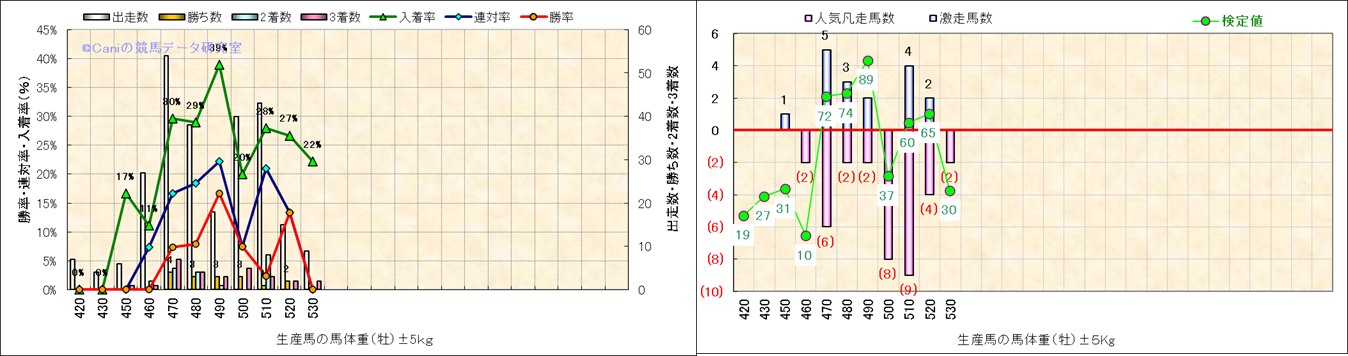 牡産駒の体重別成績-近3年- |
