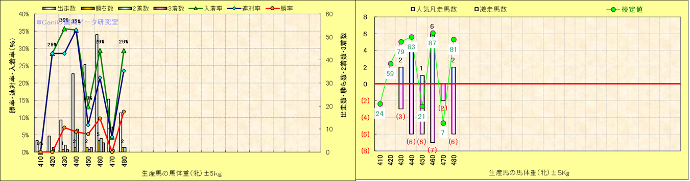 牝産駒の体重別成績-近3年- |