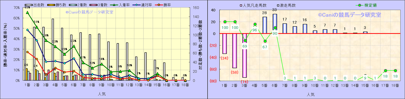 人気凡走馬:1-3番人気で着外、激走馬:5-18番人気で入着 |