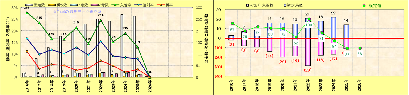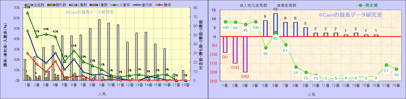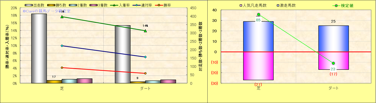 人気凡走馬:1-3番人気で着外、激走馬:5-18番人気で入着 |