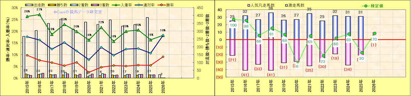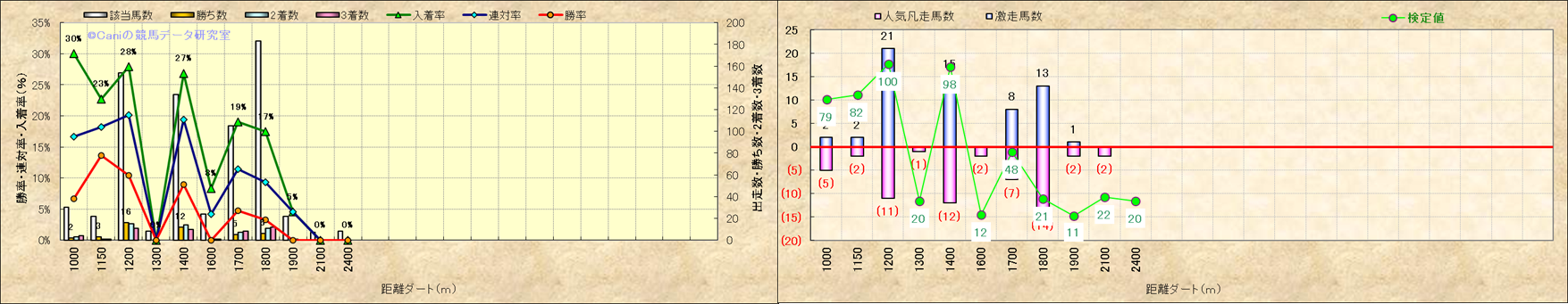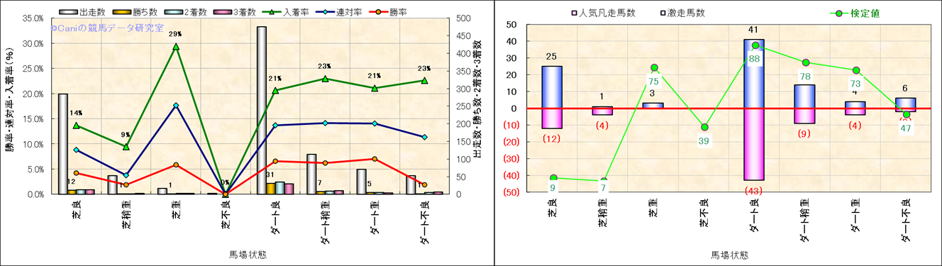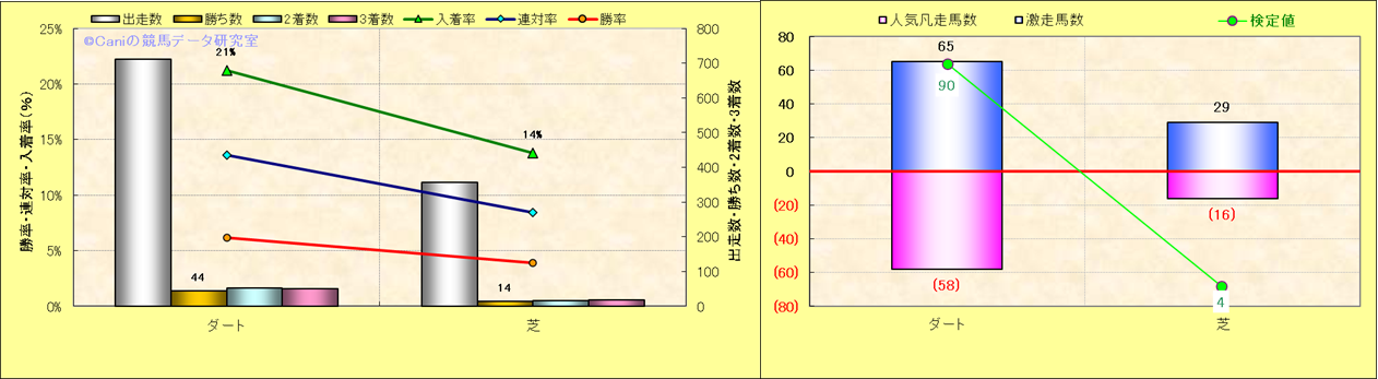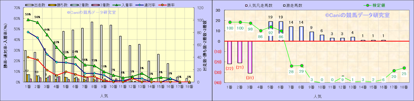 人気凡走馬:1-3番人気で着外、激走馬:5-18番人気で入着 |