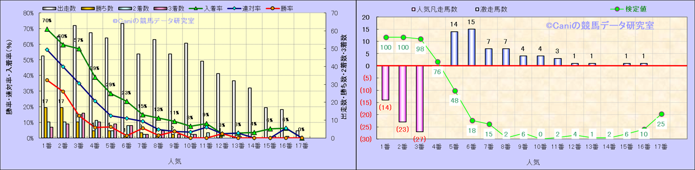 人気凡走馬:1-3番人気で着外、激走馬:5-18番人気で入着 |