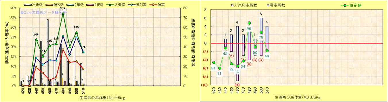 牡産駒の体重別成績-近3年- |