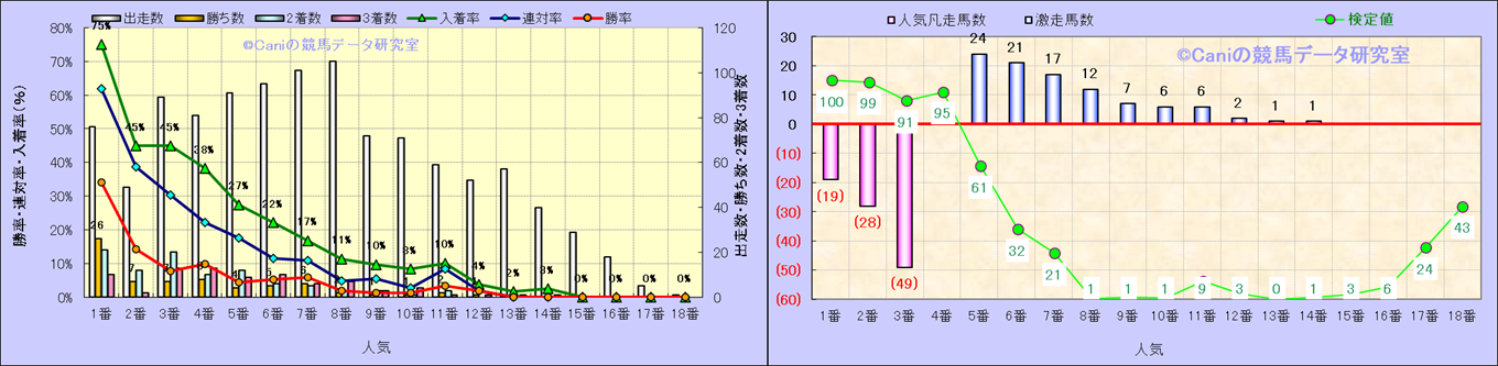 人気凡走馬:1-3番人気で着外、激走馬:5-18番人気で入着 |