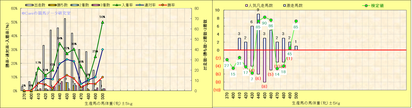 牡産駒の体重別成績-近3年- |