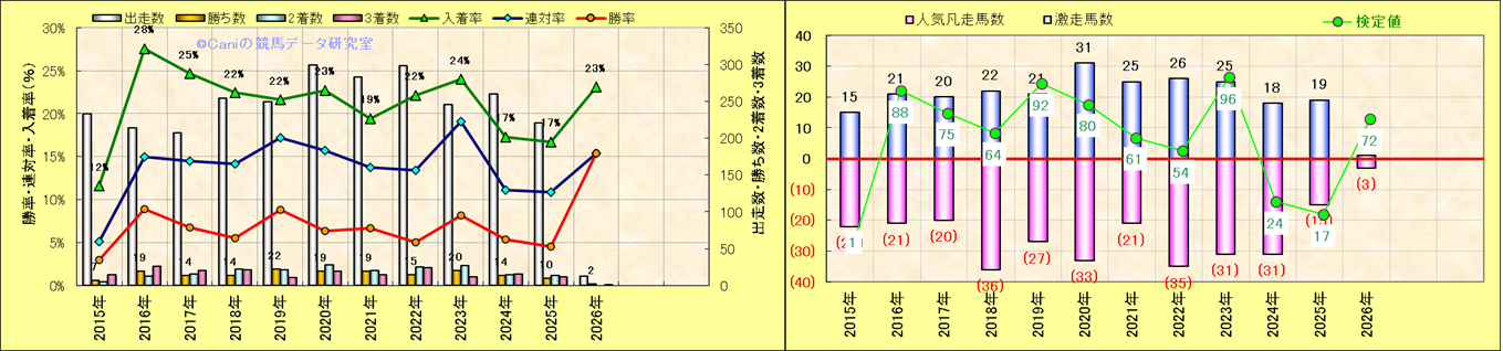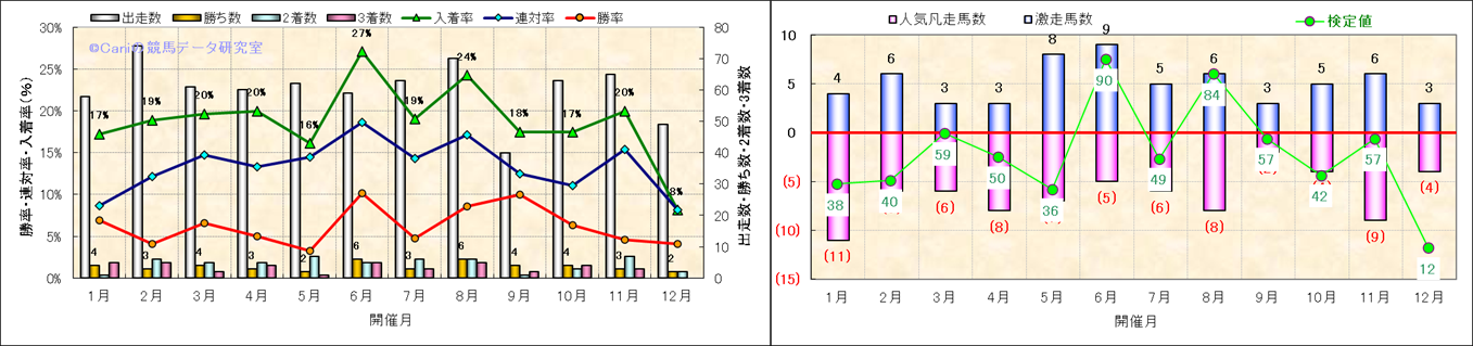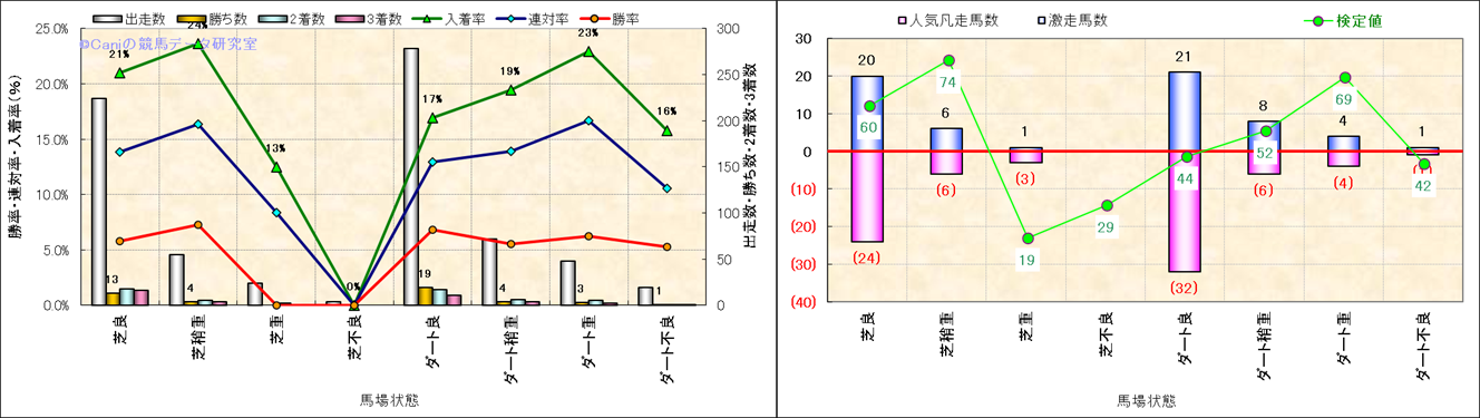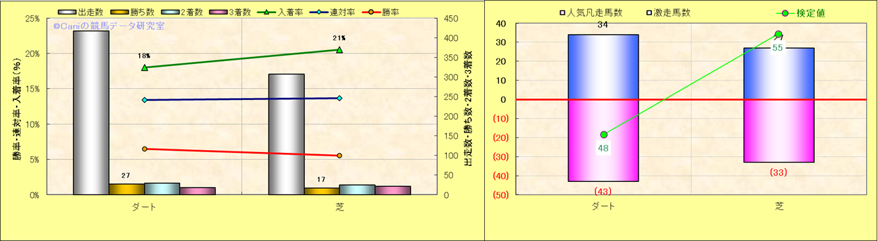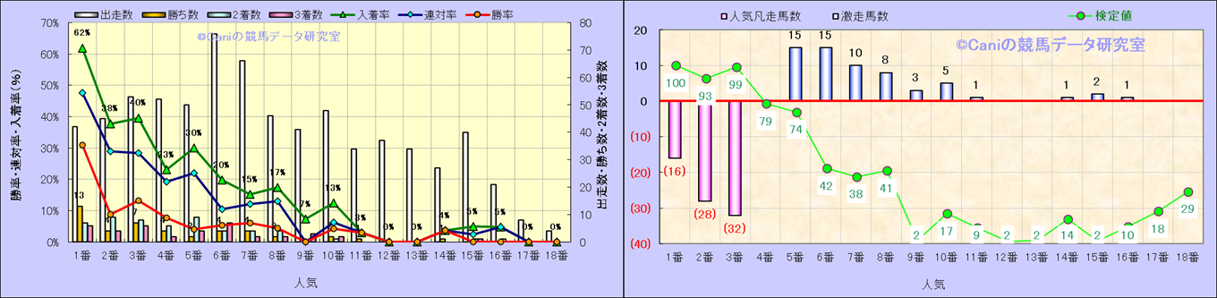 人気凡走馬:1-3番人気で着外、激走馬:5-18番人気で入着 |