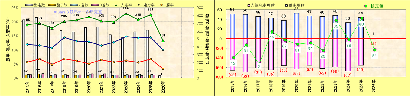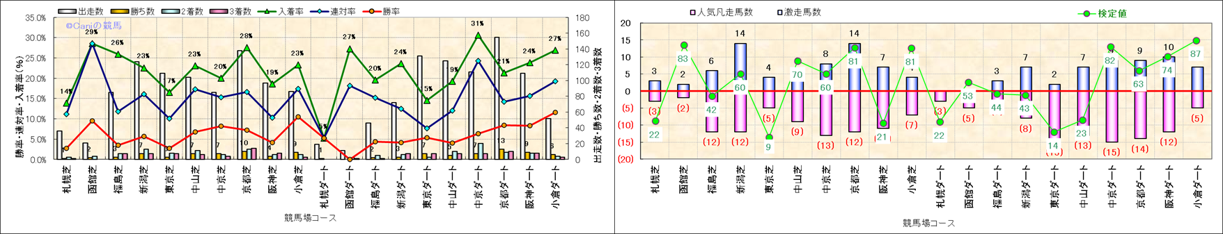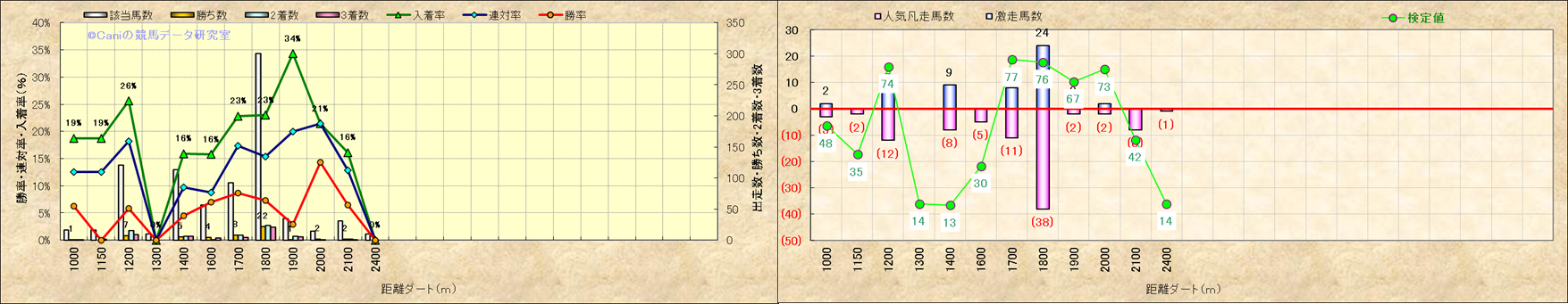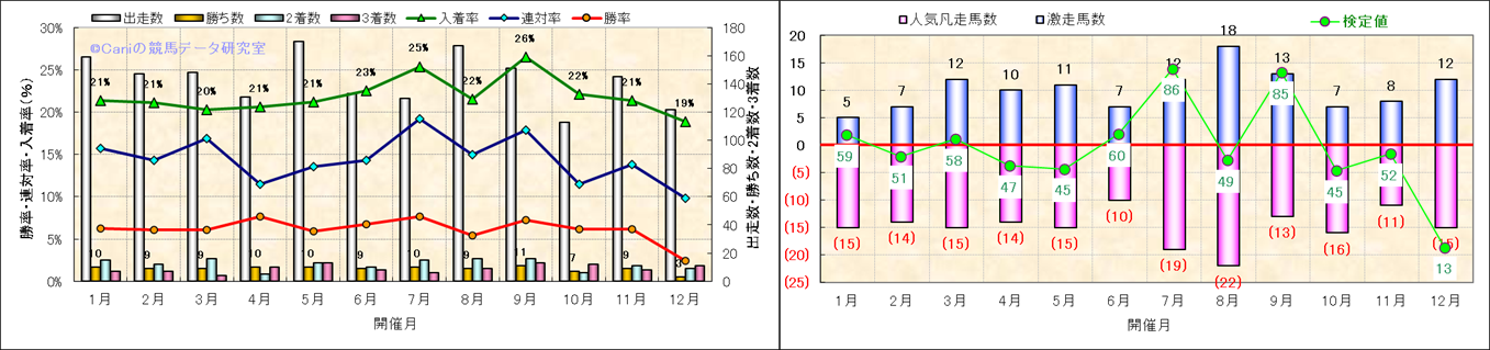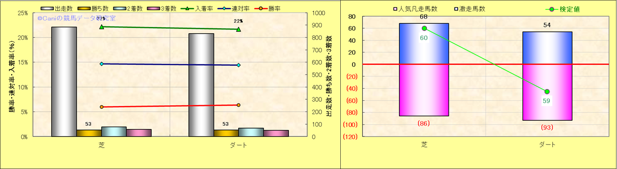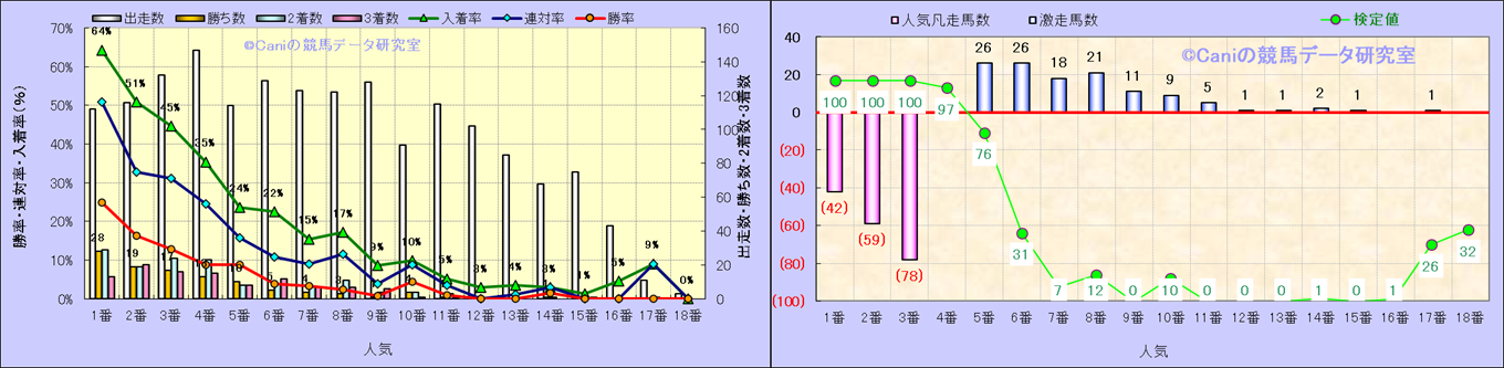 人気凡走馬:1-3番人気で着外、激走馬:5-18番人気で入着 |