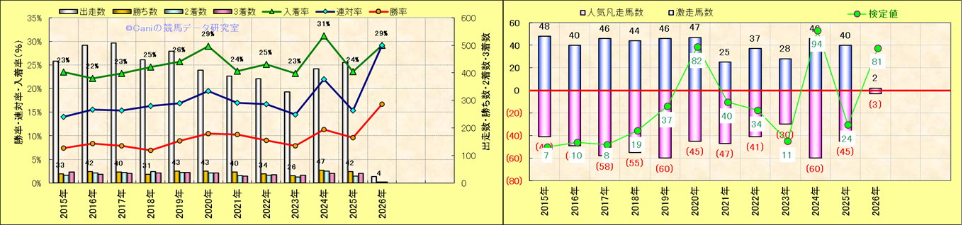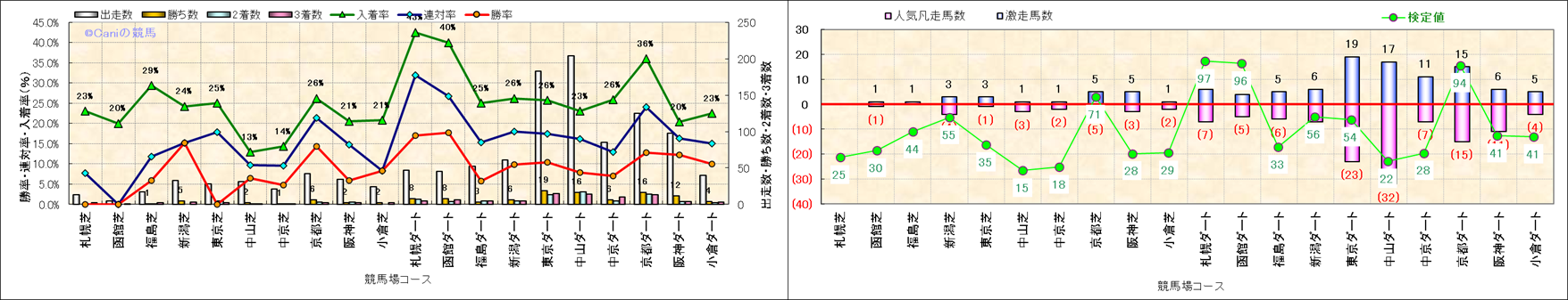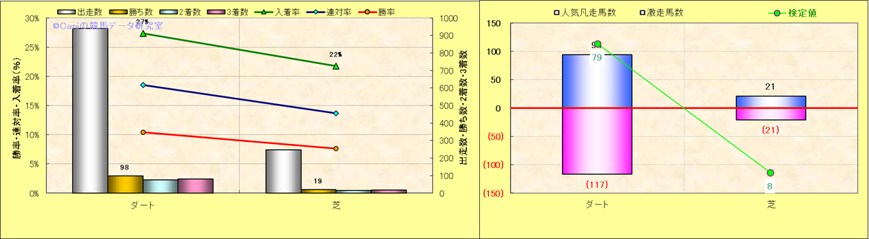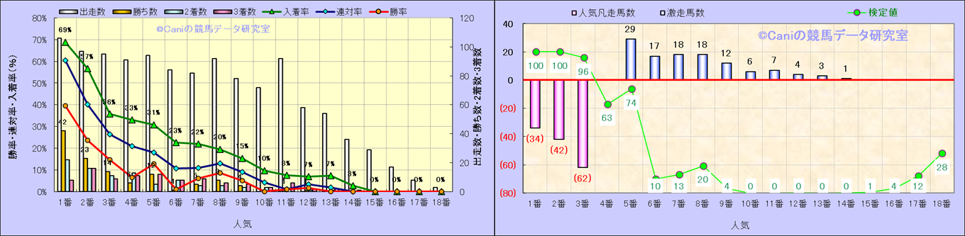 人気凡走馬:1-3番人気で着外、激走馬:5-18番人気で入着 |