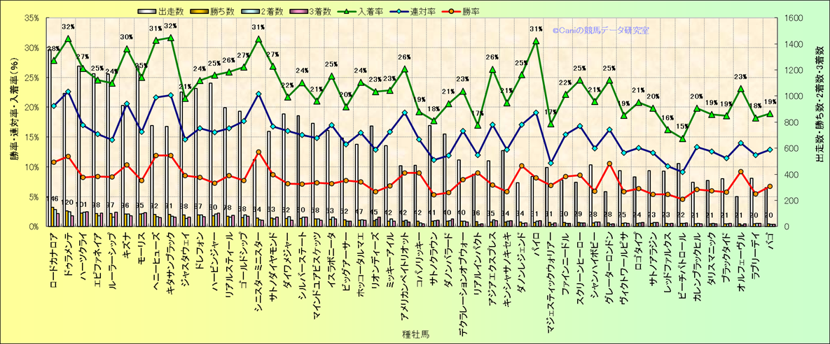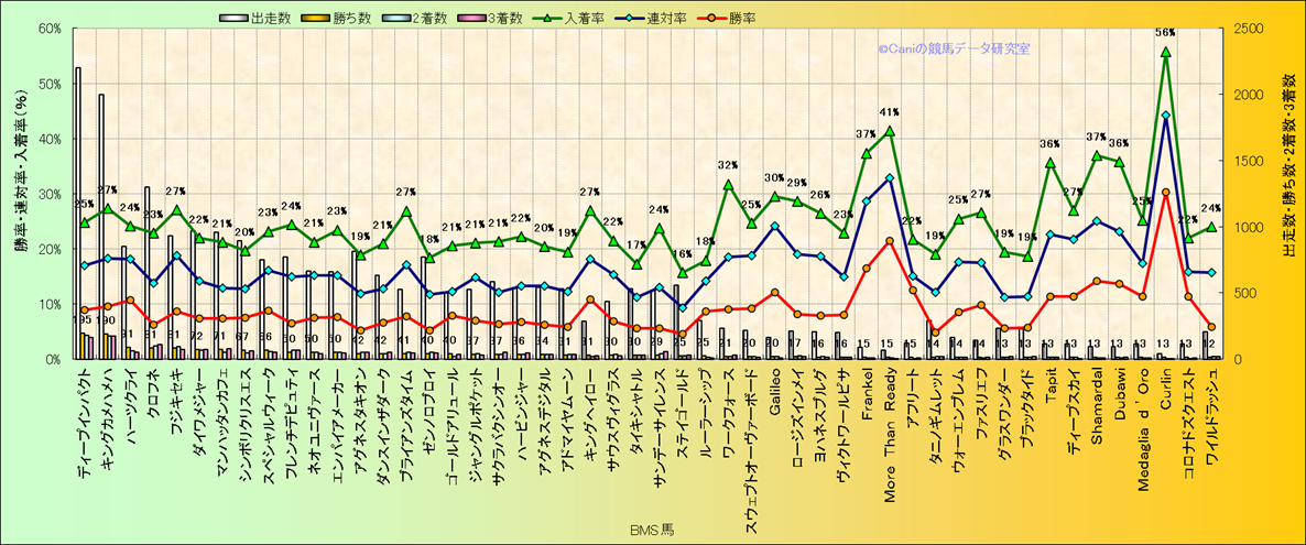 | 馬名 | 父名 | BMS名 | 勝利数 | 2着数 | 3着数 | 勝率 | 連対率 | 入着率 | ||||||