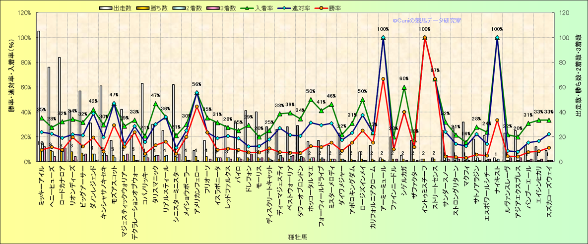 | メイショウカゼマチ | ミッキーアイル | メイショウボーラー | 2 | 0 | 0 | 100.0% | 100.0% | 100.0% | ||||||
