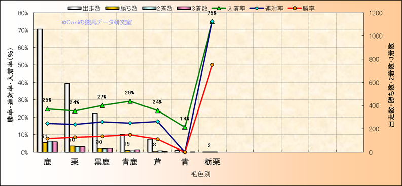 | 毛色別 | ダートコース1000m限定解析(近3年) | |||||||||||||