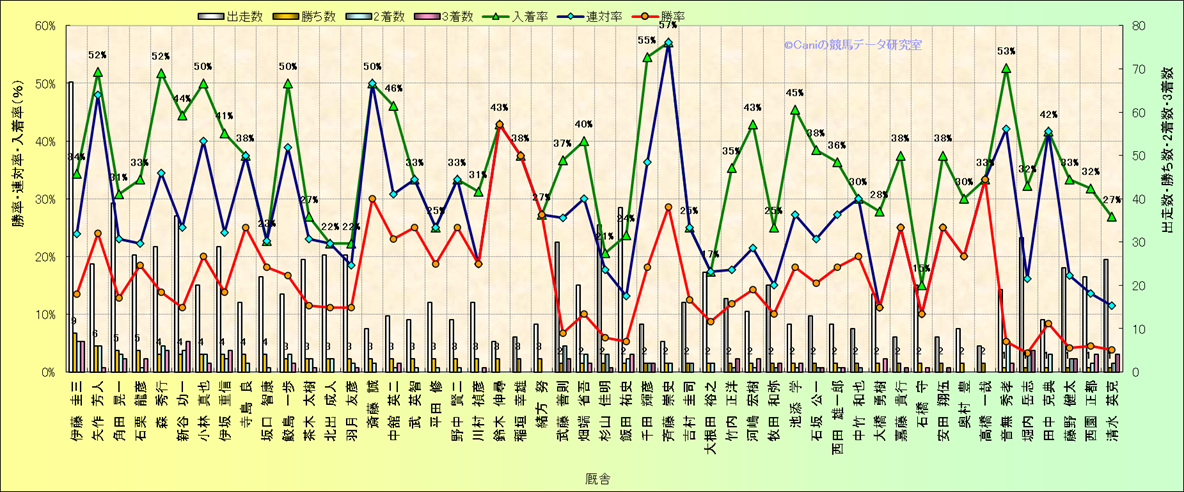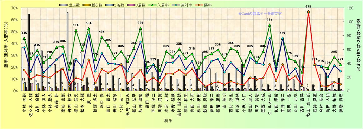 | 騎手別 | ダートコース1000m限定解析(近3年) | |||||||||||||