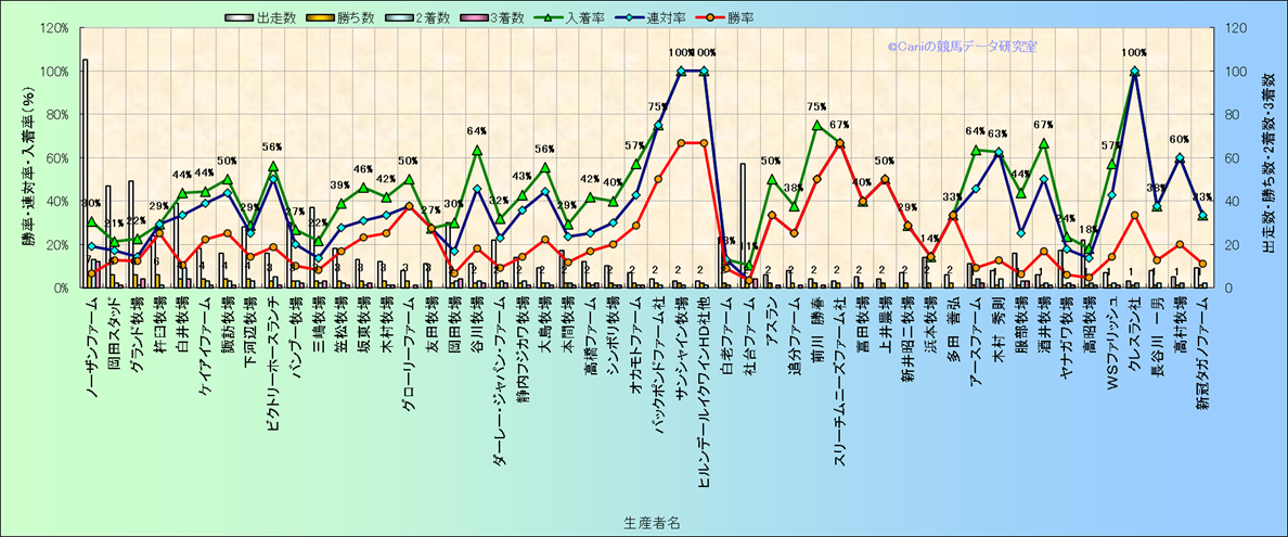 | 生産者別 | ダートコース1000m限定解析(近3年) | |||||||||||||