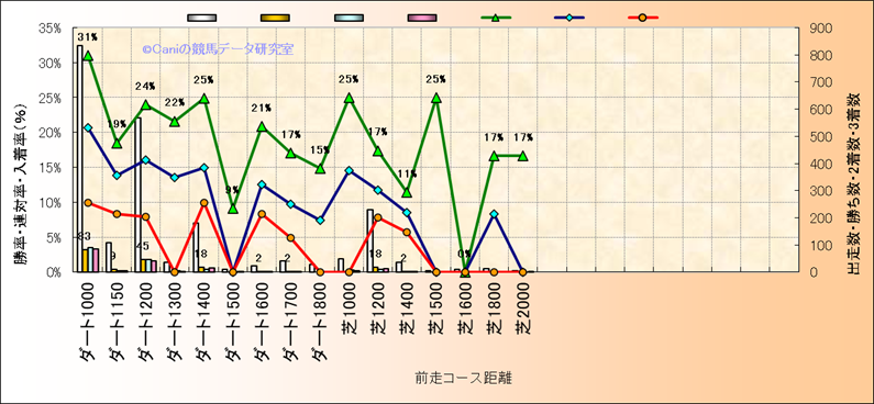 | 前走コース距離別 | ダートコース1000m限定解析(近3年) | |||||||||||||