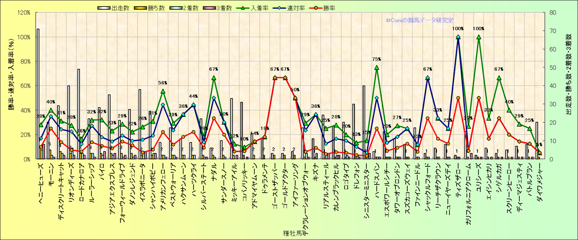 | イスラアネーロ | イスラボニータ | シニスターミニスター | 1 | 0 | 0 | 25.0% | 25.0% | 25.0% | ||||||