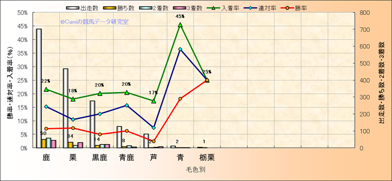 | 毛色別 | ダートコース1150m限定解析(近3年) | |||||||||||||