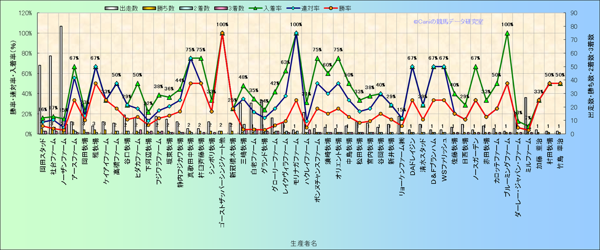 | 生産者別 | ダートコース1150m限定解析(近3年) | |||||||||||||