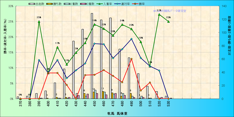 | 牝馬 馬体重別 | ダートコース1150m限定解析(近3年) | |||||||||||||