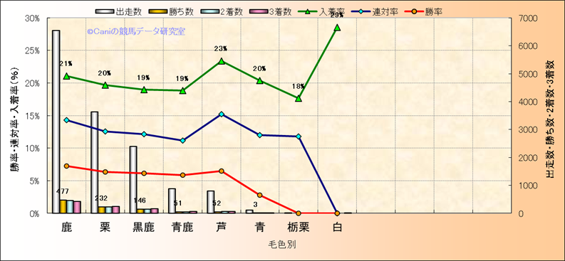 | 毛色別 | ダートコース1200m限定解析(近3年) | |||||||||||||