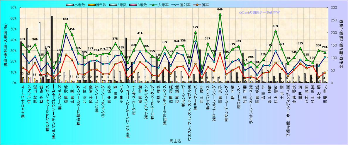 | カミーロ | リオンディーズ | ディープスカイ | 2 | 3 | 1 | 20.0% | 50.0% | 60.0% | ||||||