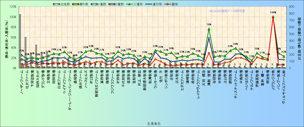 | 生産者別 | ダートコース1200m限定解析(近3年) | |||||||||||||