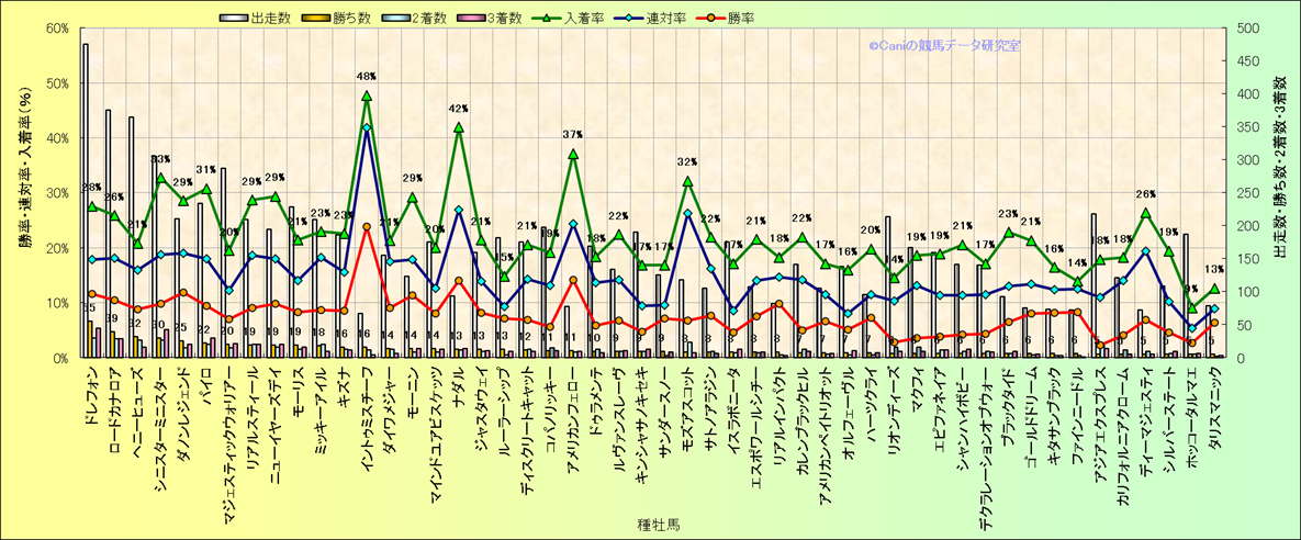 | ロードフォンス | ロードカナロア | ダイワメジャー | 4 | 2 | 3 | 36.4% | 54.5% | 81.8% | ||||||