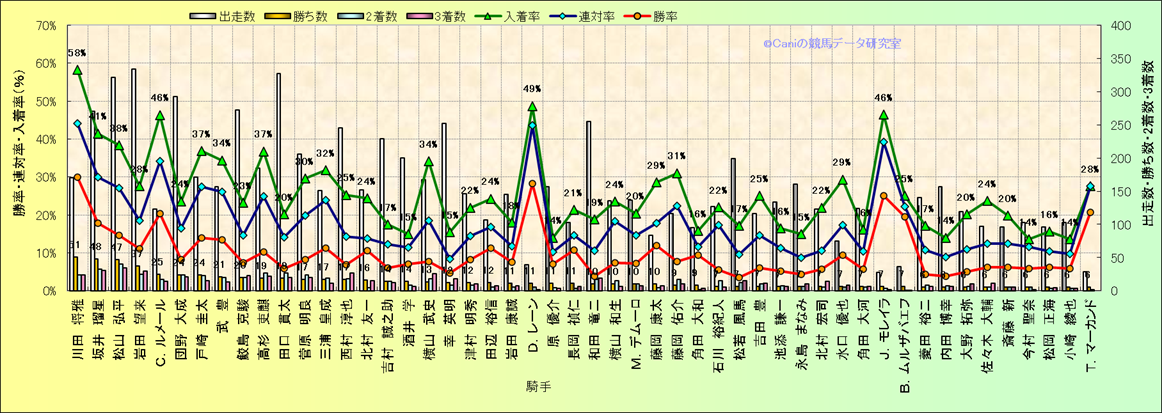 | 騎手別 | ダートコース1400m限定解析(近3年) | |||||||||||||