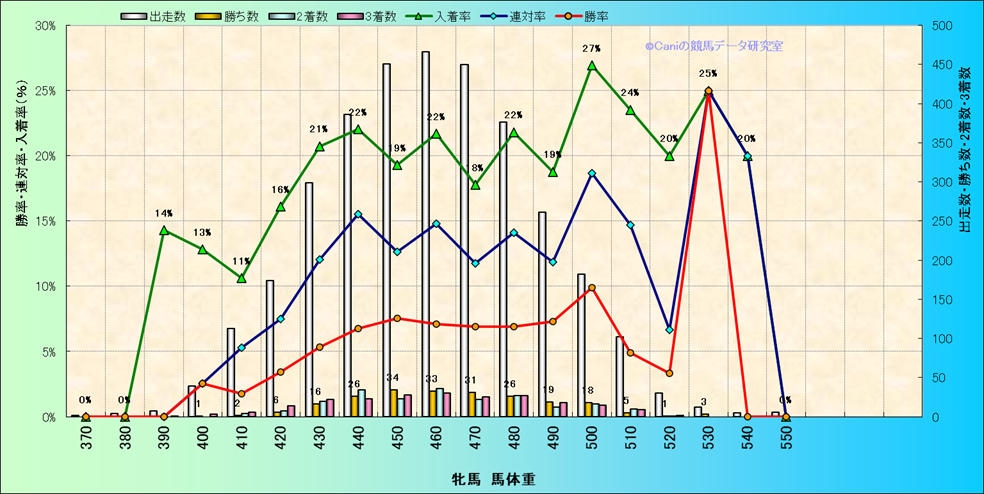 | 牝馬 馬体重別 | ダートコース1700m限定解析(近3年) | |||||||||||||