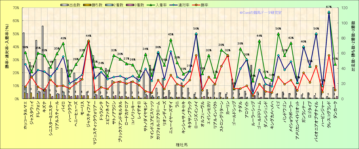 | ロコポルティ | ヘニーヒューズ | キングカメハメハ | 1 | 0 | 0 | 33.3% | 33.3% | 33.3% | ||||||