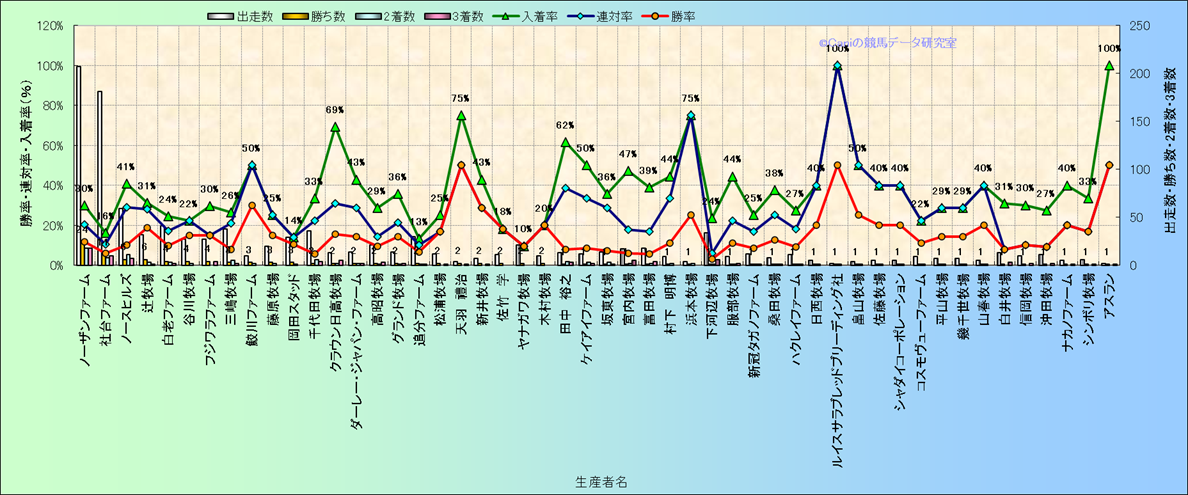 | 生産者別 | ダートコース1900m限定解析(近3年) | |||||||||||||