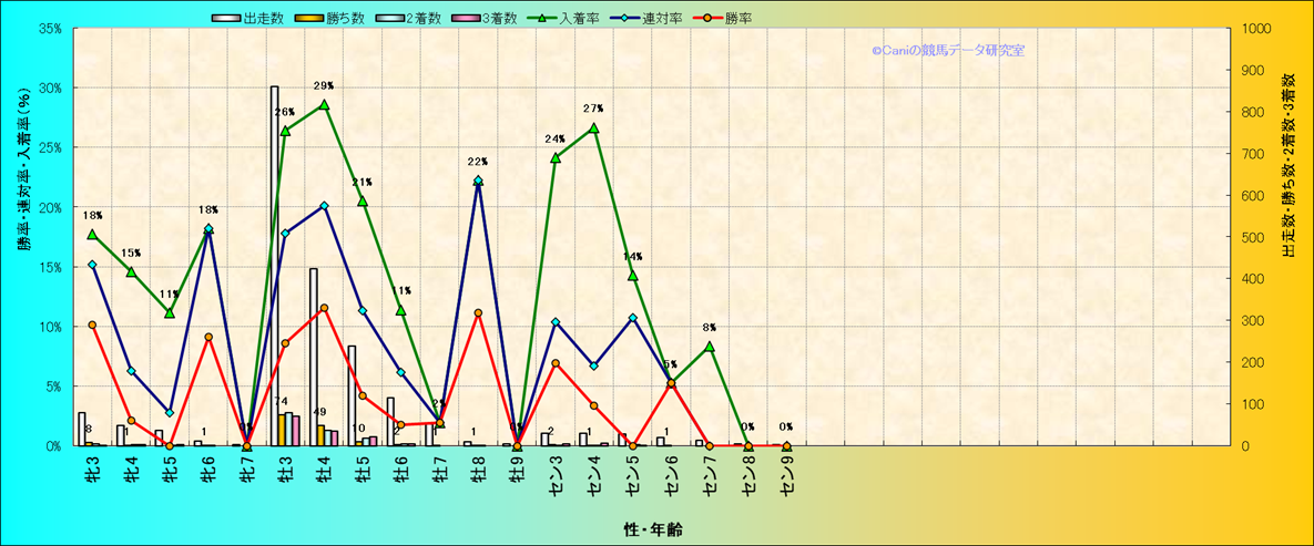 | 性・年齢別 | ダートコース1900m限定解析(近3年) | |||||||||||||