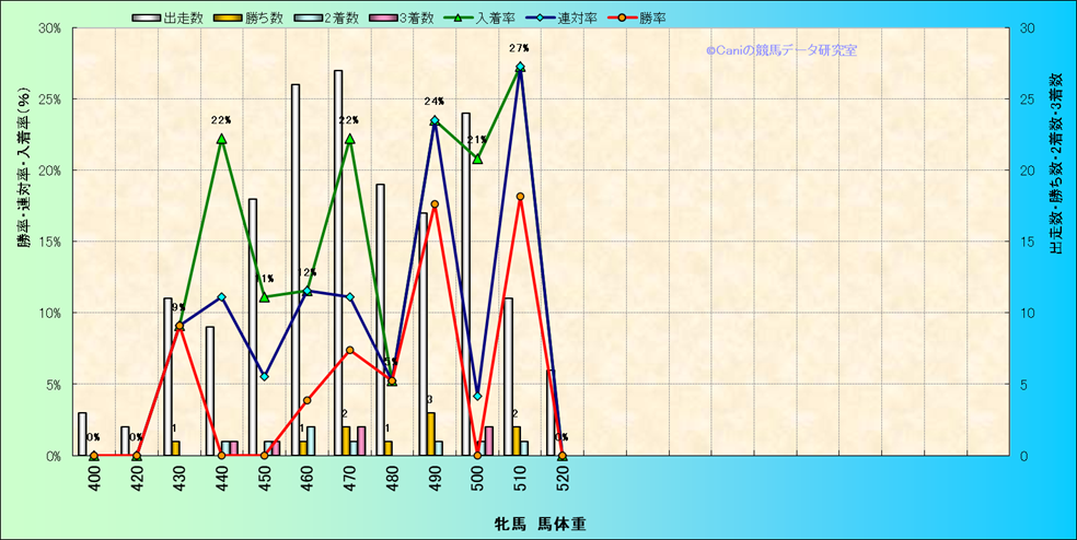 | 牝馬 馬体重別 | ダートコース1900m限定解析(近3年) | |||||||||||||
