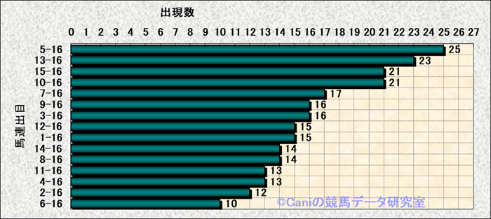 | 東京平地ダート左1600mの解析。解析期間2003/04/25〜2025/12/10(16頭立て限定) | |||||||||||